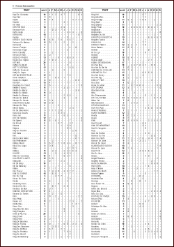 Méthode et mode d'emploiUne note mensuelle est attribuée à chaque cheval en fonction de ses performances. Une note générale est ensuite calculée pour définir la valeur du cheval tout au long de la saison. 12 colonnes correspondent à chaque mois de l'année et une colonne supplémentaire à la note générale. La note mensuelle est sur 10 et la note générale sur 20. Le cheval ayant une note supérieure ou égale à 5 et une note générale supérieure à 10 est une fois sur deux à l'arrivée. Certains chevaux ont 0, ce qui signifie une période de méforme et si c'est un tiret (absence de notation), le cheval n'a pas de période de forme.